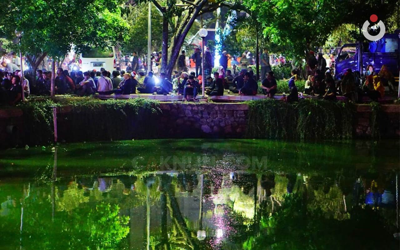 Kampus Unair sedang syahdu malam ini, terasa tenang dan bening. Gedung Rektorat berdiri tepat di depang panggung, sementara gedung-gedung hotel tampak mengepung dari penjuru Surabaya. Sejak awal saya merasakan ketenangan sekaligus kegelisahan, juga nyamuk banyak hinggap di kaki dan tangan tiap kali duduk. Mungkin dua danau buatan yang menarik mata, yang letaknya persis di belakang panggung, itu turut membantu mensukseskan program keluarga nyamuk, atau bagaimana saya kurang paham. Tapi ada hal baru yang saya dengar dari Mbah Nun, agak puitis namun sukses menggambarkan yang saya rasakan, “Malam ini aroma kebangkitan terasa sangat menyengat”.