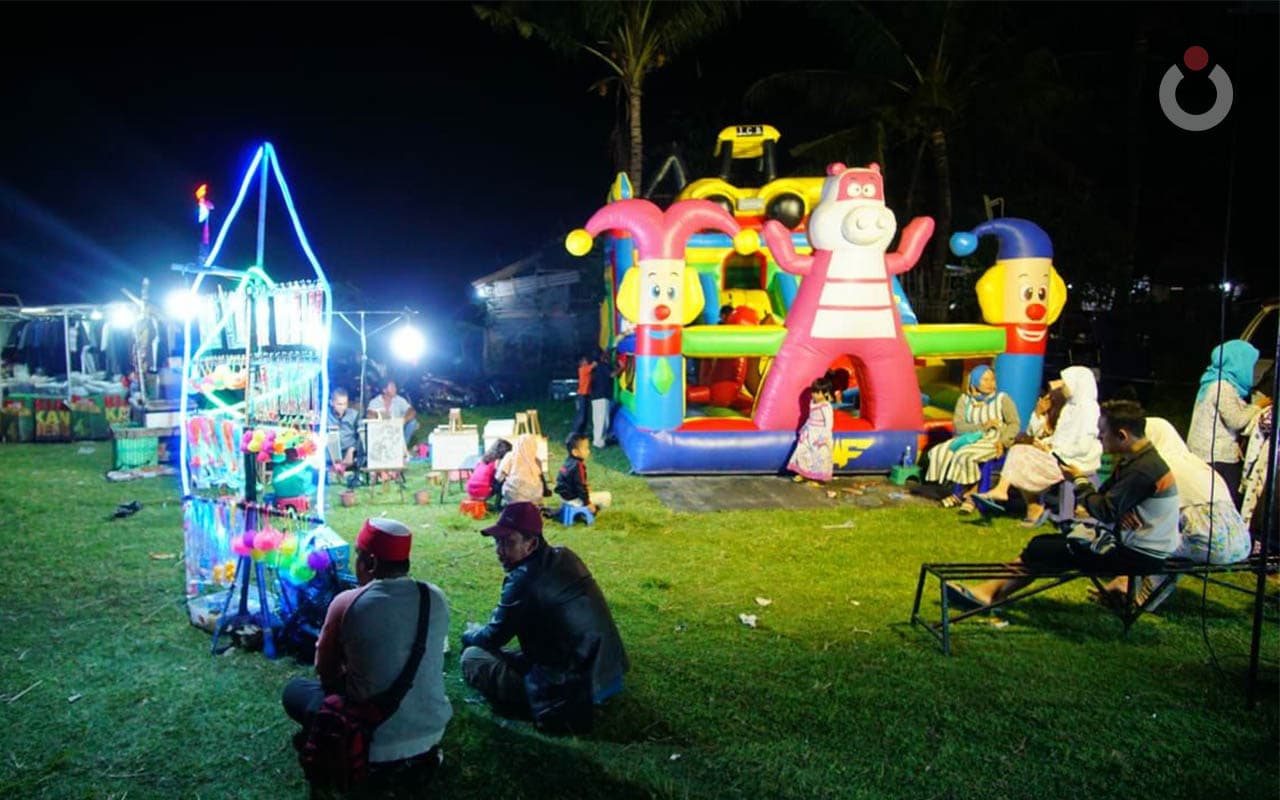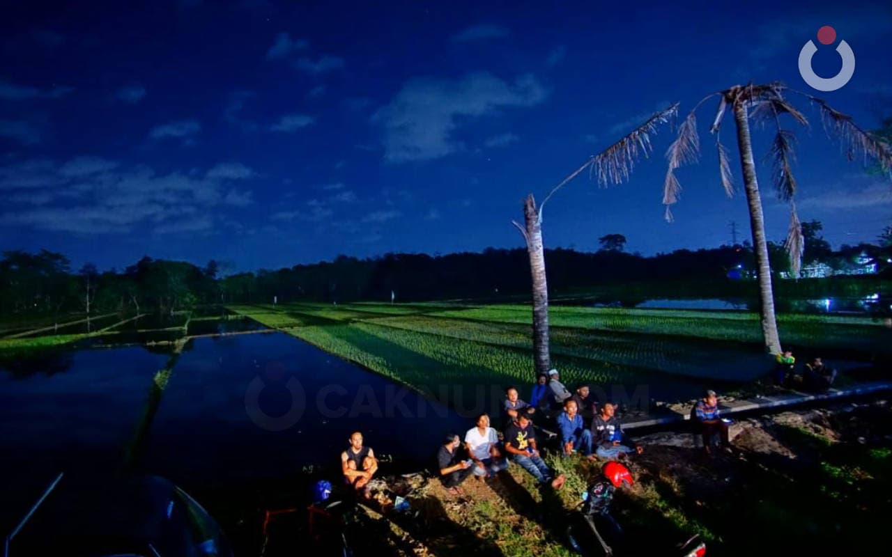 Saya sempat lihat-lihat ke sebelah lapangan, hanya dibatasi aliran pengairan kecil di situ langsung sawah. Genangan air di sawah, memantulkan kegelapan malam di sini. Padi-padi baru saja ditanami kembali, belum benar-benar menjulang tapi sudah terlihat akan hidup.