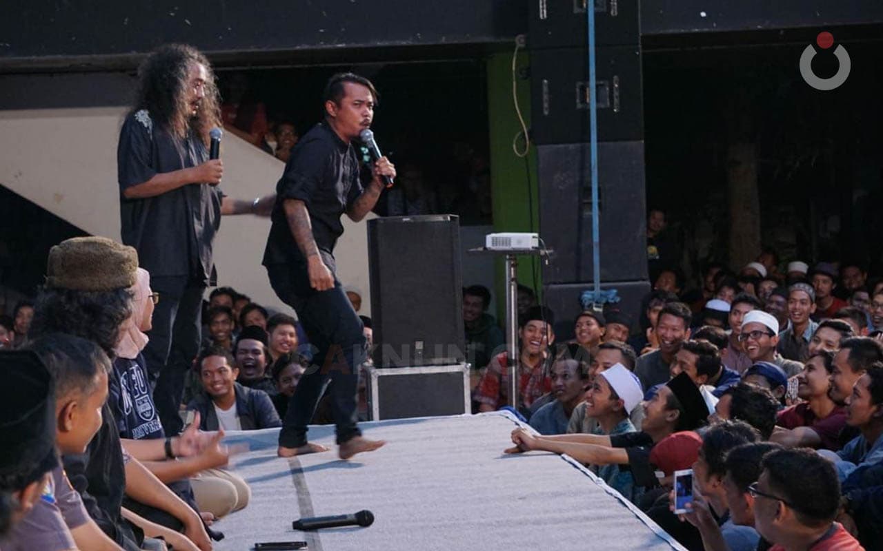 Di Jakarta, pusat kecarut-marutan politik nasional itu, menurut Mbah Nun orang saling mempertentangkan klasifikasinya yang, kalau boleh kita bilang: delusif. Semua soal stigma, bahwa FPI dan HTI itu anti Pancasila, PDIP dikesankan PKI komunis dan seterusnya dan seterusnya terus saja berantem bila tak ada cinta. “Tapi di bawah, hal-hal semacam itu tidak terjadi,” ujar Mbah Nun. Entah kenapa kalimat sederhana ini disambut tepuk tangan meriah dari seantero arah para hadirin. Mungkin ribuan pasang mata dan telinga, nyawa dan jiwa malam itu merasa terwakili dengan kalimat itu. Kalimat yang sederhana saja, tapi bobotnya penuh pemahaman cinta.