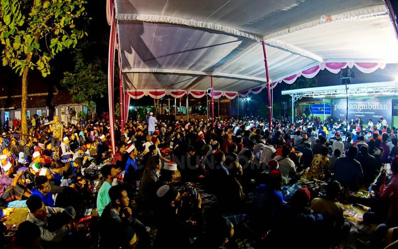 Kunci kesadaran yang diwakili oleh tema pengajian itu menuntun saya pada sabil, syari’, thariq dan shirath mengapa saya merindukan Padhangmbulan. Pertama, tema pengajian yang ternyata nge-klik dengan aktualitas pengalaman saya selama satu bulan menawarkan mata pandang yang membebaskan. Kedua, cara berpikir, sikap berpikir, sudut pandang dan seterusnya, saya konfirmasi langsung apakah beririsan dengan ilmu Padhangmbulan atau justru bergerak menjauh. Ketiga, kita memasang kepekaan imajinasi fantastis: simbolisasi dan analogi apa yang akan disampaikan Mbah Nun untuk mengupas tema pengajian malam itu.
