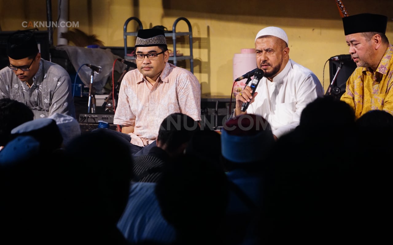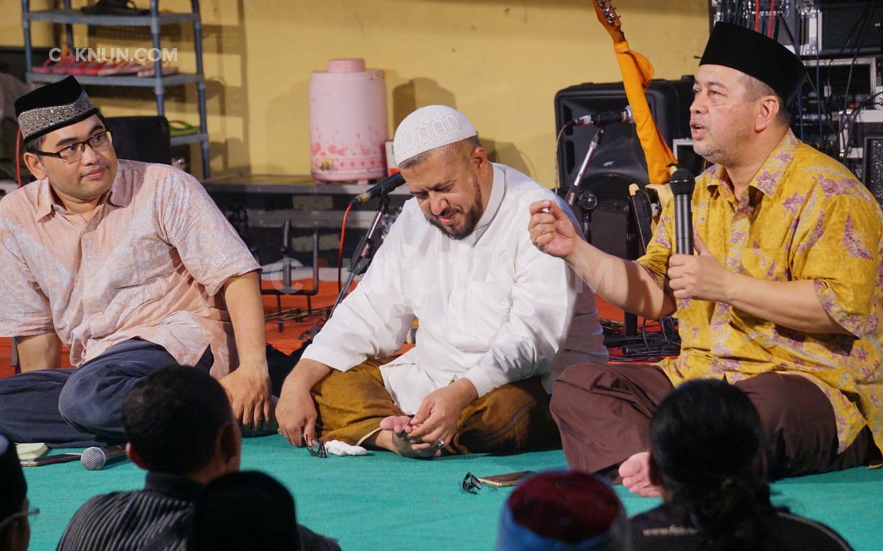 Tak berapa lama, Mas Helmi selaku Redaktur Maiyah naik ke panggung membersamai dua tamu malam itu yakni Ustadz Hasan Dalil dan Habib Ahmad Barakba.