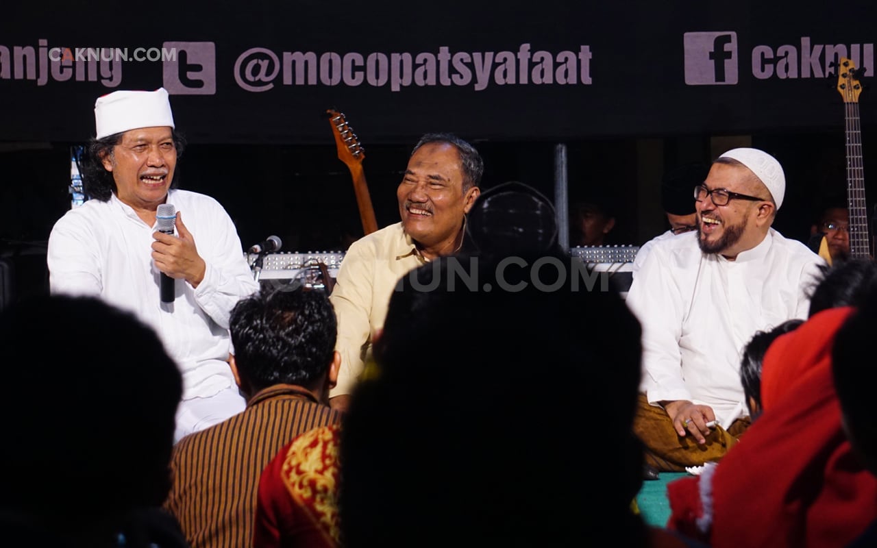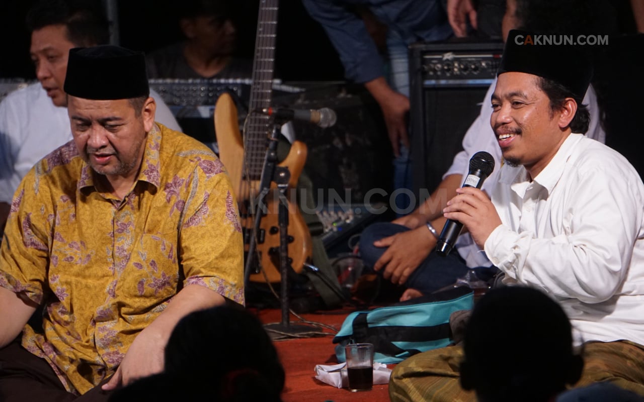 Menjelang akhir acara, Mbah Nun pun juga kemudian menampakkan sisi yang berbeda. Suasana lingkaran yang cair kemudian berganti khusyuk ketika Mbah Nun mengubah teknik komunikasi menjadi pembicara podium, orator. Dua sistem besar capaian peradaban komunikasi dunia, malam itu menemukan panggonane.