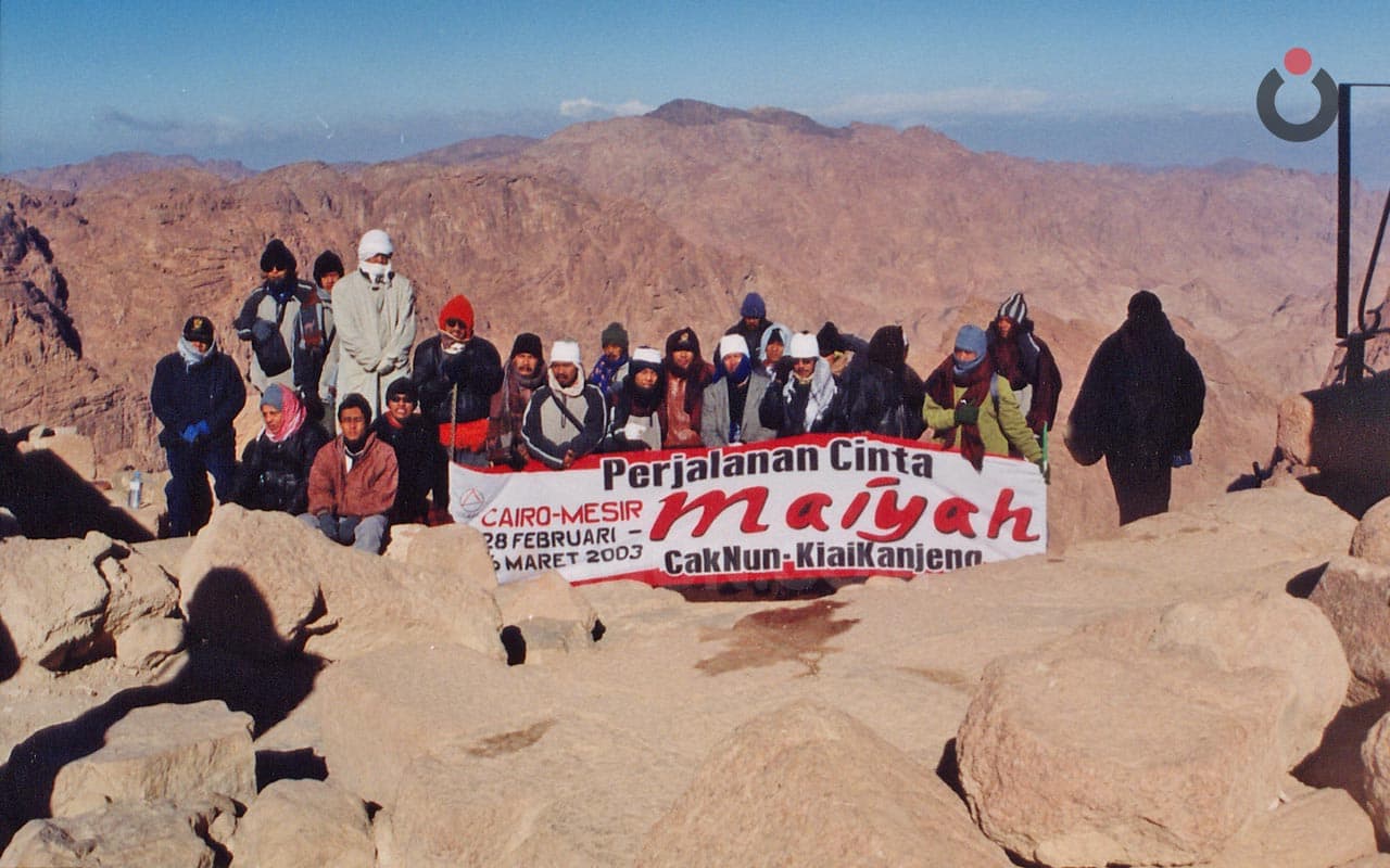 Dan ketika kami maiyahan di Musholla, setapak di atas tempat Nabi Musa AS bertapa melakukan uzlah 40 hari–Mbak Via untuk pertama kalinya berbicara agak panjang. Sambil menangis mengguguk-guguk, dan memang semua yang berbicara pagi itu di puncak Jabal Musa, tak seorang pun yang tak menangis. Mbak Via menyatakan rasa syukur kepada Allah bahwa delapan tahun terakhir dalam hidupnya ini Allah menganugerahkan pengalaman, nilai-nilai, kebahagiaan dan segala sesuatu yang luar biasa nikmatnya–yang tak mungkin ia dapatkan jika ia menjadi artis di Jakarta.