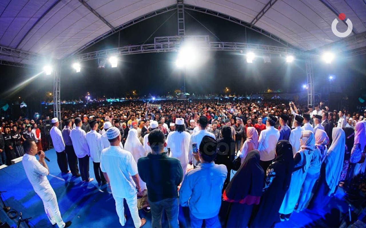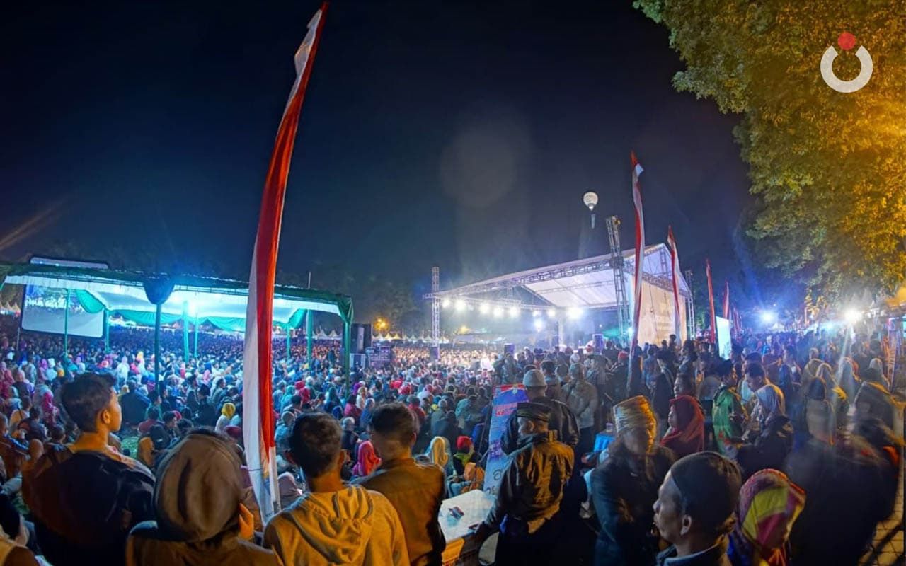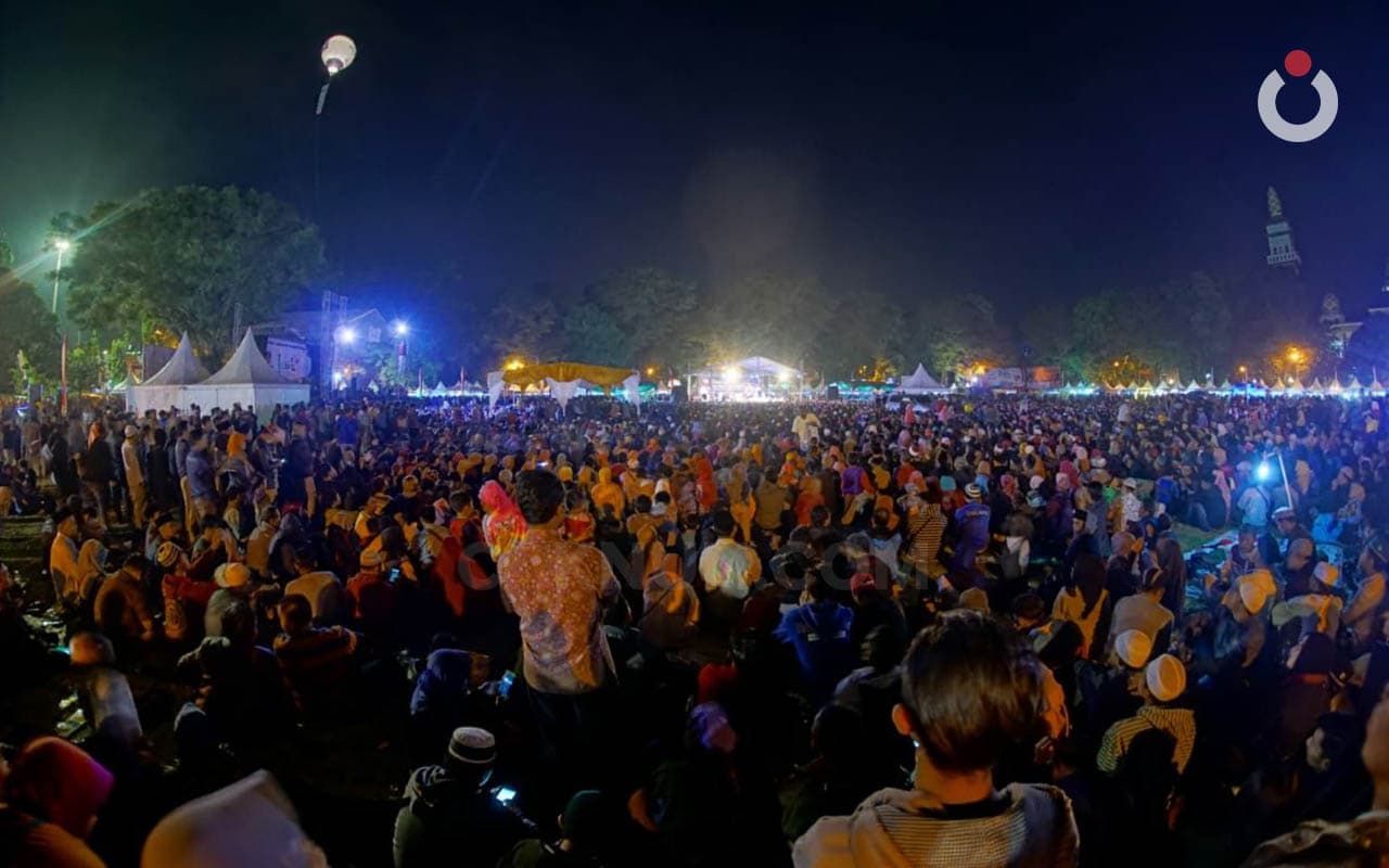 Laporan kawan saya barangkali bisa membantu, “Alun-alun penuh. Puluhan ribu jamaah. Duduk menyimak dengan tenang. Ikut Sinau Bareng malam ini. Anak anak muda dengan wajah wajah sumringah mengikuti Sinau Bareng malam ini. Sorot mata mereka tampak kangen kepada Mbah Nun. Kiaikanjeng memang termasuk tidak sering ke kota Salatiga. Sekian tahun yang lalu acara di lapangan ini, malam ini kangennya mereka, melingkar, menyimak dengan khusyuk.”