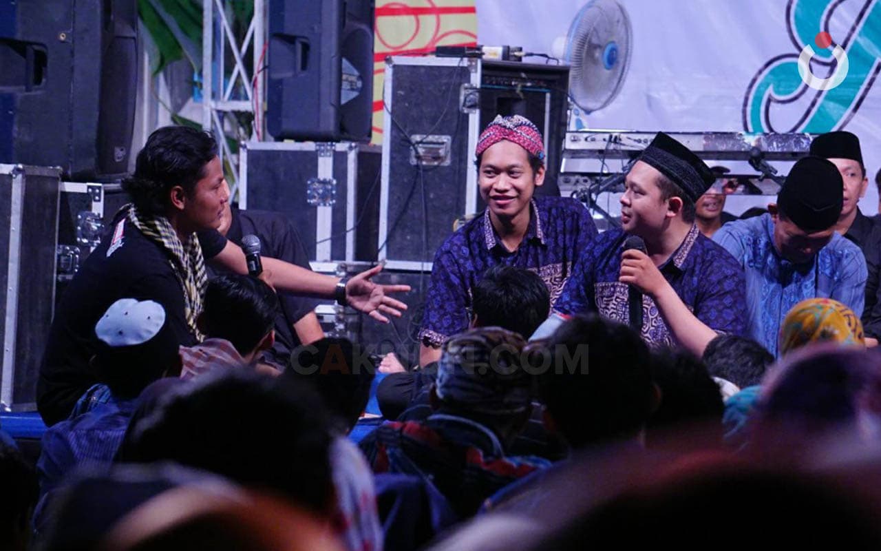 Musikalitas KiaiKanjeng tentu berperan sangat besar. Seorang pemuda saya perhatikan, sambil saya latihan membaca profil secara cepat. Pemuda itu berpeci hitam, kemeja hijau lengan pendek, menyelempangkan sorban hijau di pundak. Sepanjang acara, hanya dia yang kurang banyak tertawa. Wajahnya khusyuk menatap panggung, posisi duduknya tegak hampir tak bergeming, postur tubuhnya methekel. Saya mulai berpikir dia orang militer atau anggota perguruan silat. Eh pas lagu “Sayang” dilantunkan KiaiKanjeng sebagai bagian dari Medley Era, paling heboh dong Mas ini jogetnya, kaget saya. Temonholic kayaknya. Keren Mas.