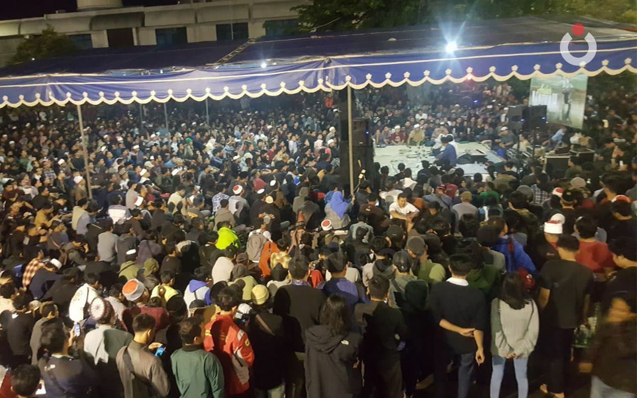 Menjelang pukul 11 malam, Cak Nun hadir dan bergabung di Panggung. Merespons poin yang diutarakan sebelumnya oleh Ust. Noorshofa, Cak Nun menjelaskan bahwa pada peristiwa hijrahnya Rasulullah saw ke Madinah saat itu posisi Ummat Islam adalah minoritas. Jadi, Rasulullah saw saat memimpin Madinah saat itu adalah Pemimpin yang memimpin seluruh elemen masyarakat di Madinah yang sebegitu plural saat itu, dan beliau tidak hanya menjadi Pemimpin bagi mereka yang mencintai beliau, tetapi juga menjadi Pemimpin bagi yang membenci beliau.