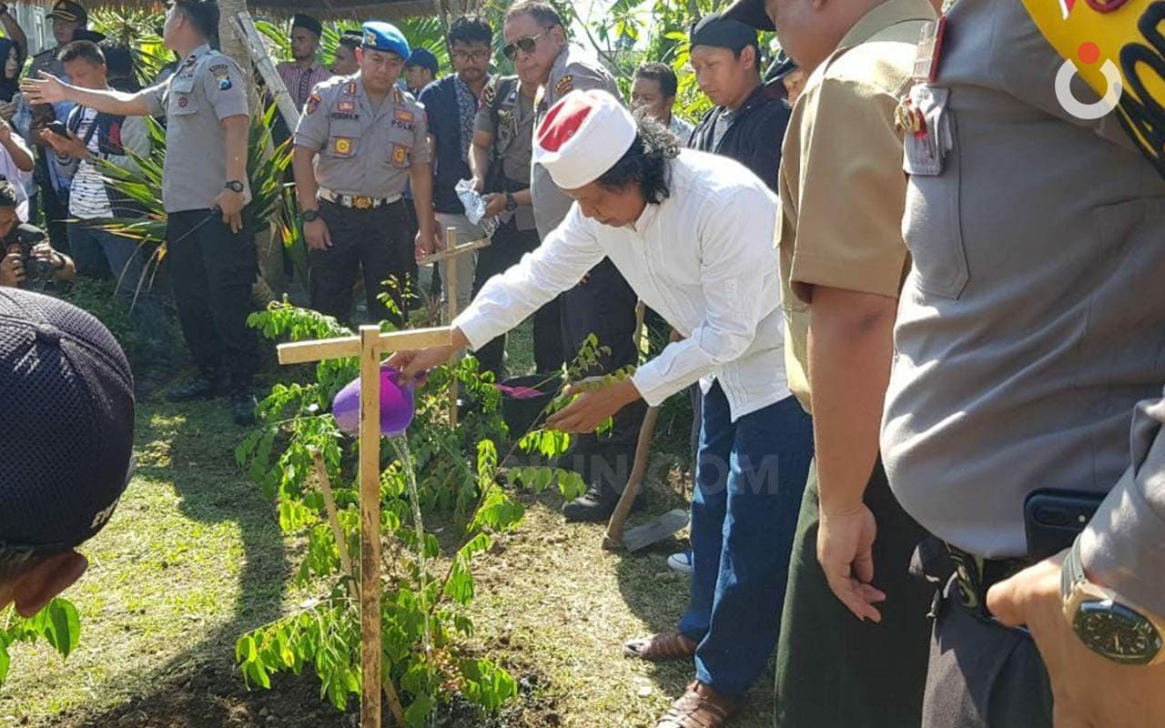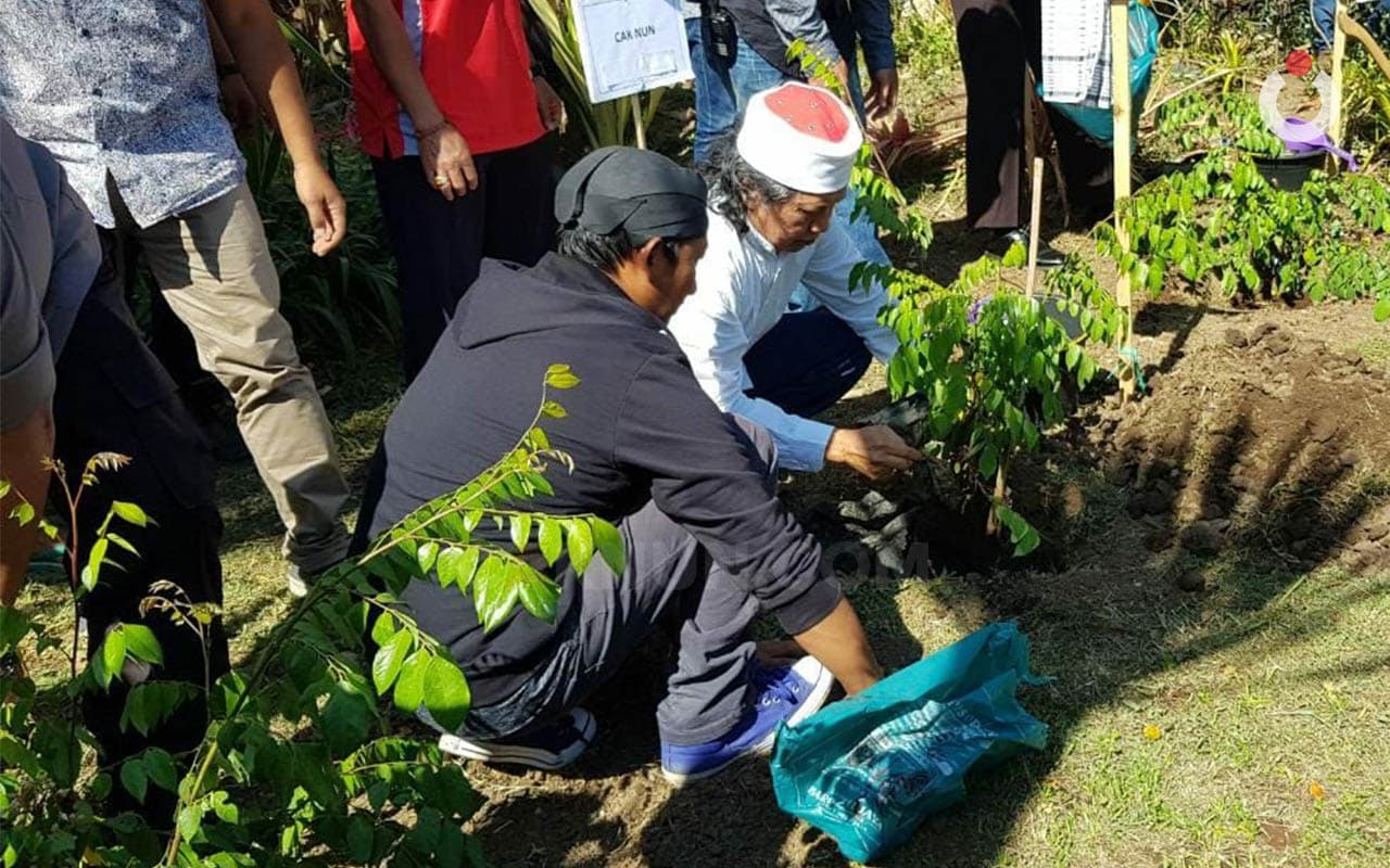 Kamis 27 September 2018. Sebelum malam nanti Mbah Nun akan membersamai beragam lapis masyarakat dalam gelaran Sinau Bareng. Pada siang ini Mbah Nun ditemani Kapolda Jatim Irjen Pol Luki Hermawan untuk menanam pohon bersama. Juga melibatkan 200 mahasiswa penggerak dan komunitas FPOTB sebagai penyelenggara. FPOTB adalah singkatan dari Forum Pemuda Ora Terhormat Blas. Para pemuda yang ngakunya ndak terhormat, tapi melakukan kegiatan yang sangat terhormat, blas!