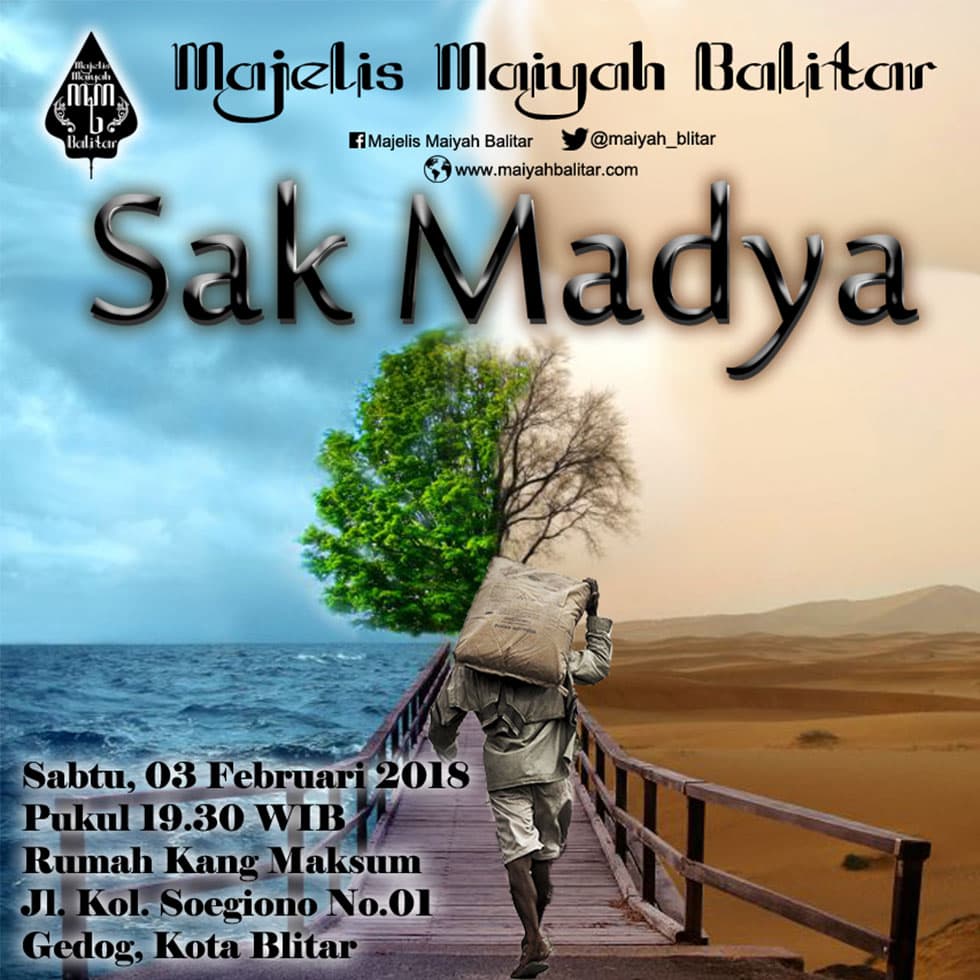 Menurut orang Jawa, kita pun perlu belajar berlaku sak madya untuk menuju keseimbangan. Sak madya. Secukupnya saja. Tidak kurang dan tidak lebih. Meminjam bahasa Kanjeng Nabi, bahwa sebaik-baik perkara itu adalah yang berada di tengah-tengah. Ini juga bukan berarti kita harus mencari posisi duduk di tengah saat Maiyahan ataupun kegiatan yang lainnya. Karena tengah-tengah di sini tidak diartikan secara tekstual begitu saja. Akan tetapi, bagaimana kita bisa belajar menempatkan sesuatu maupun berlaku pas pada tempatnya.