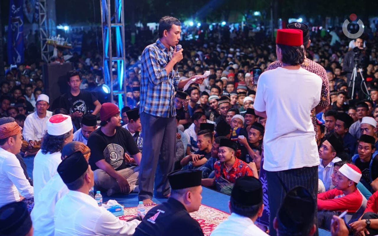 Dari lapangan Simpang Tujuh, tampak sebuah menara ikut menyaksikan dari kumandang cakrawala. Mudah saja membayangkan menara itu ikut bergembira, tersenyum bersama lantunan kegembiraan malam ini, duhai Al-Aqsa kah itu? Yang disinggahi seorang manusia termulia sepanjang usia semesta, mendirikan shalat kemudian melesat ke sidratul muntaha? Di manakah sesungguhnya Al-Aqsa itu Kanjeng Nabi? Agar bisa kami rasakan sejuk atmosfer jejak telapak kakimu. Bolehkah kami meyakini bahwa Al-Aqsa itu ada di sini, malam ini, di antara kami? Boleh ya?