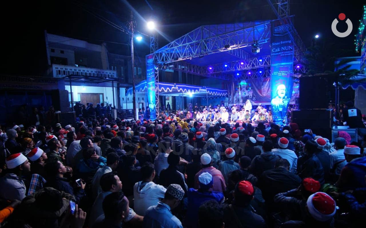 Ya, Sinau Bareng malam ini teranglah menghadirkan cinta tersendiri bagi masyarakat sekitar. Antusias warga sekitar sudah bisa dirasakan sejak 600 meter sebelum tiba di lokasi. Masih jauh dari lokasi panggung, tapi beberapa warga sudah ada yang menyediakan tempat parkiran dan menjaga kendaraan para jamaah sampai sinau bareng selesai digelar. Di sepanjang jalan yang menjadi lokasi Sinau Bareng pun banyak warga yang menjajakan barang dagangannya. Warga menyambut Sinau Bareng ini dengan wajah sumringah. Sembari sinau bareng, mereka juga mencoba melayani jamaah dengan berbagai jajanan, makanan, dan berbagai dagangannya yang diharapkan mampu menjadi lantaran datangnya berkah dari Tuhan.