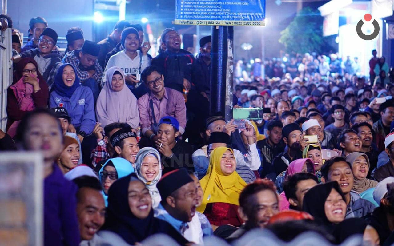 Jika biasanya Sinau Bareng diadakan di lapangan, malam ini Sinau Bareng digelar di sepanjang jalan. Mulai dari para pemuda, orang-orang tua, anak-anak, dan balita semua membaur di sepanjang jalan. Sekilas, para pemudanya pun juga tampak dari berbagai kalangan. Ada wajah-wajah para mahasiswa, para pekerja, sampai anak punk pun hadir juga untuk ikut Sinau Bareng di sini.