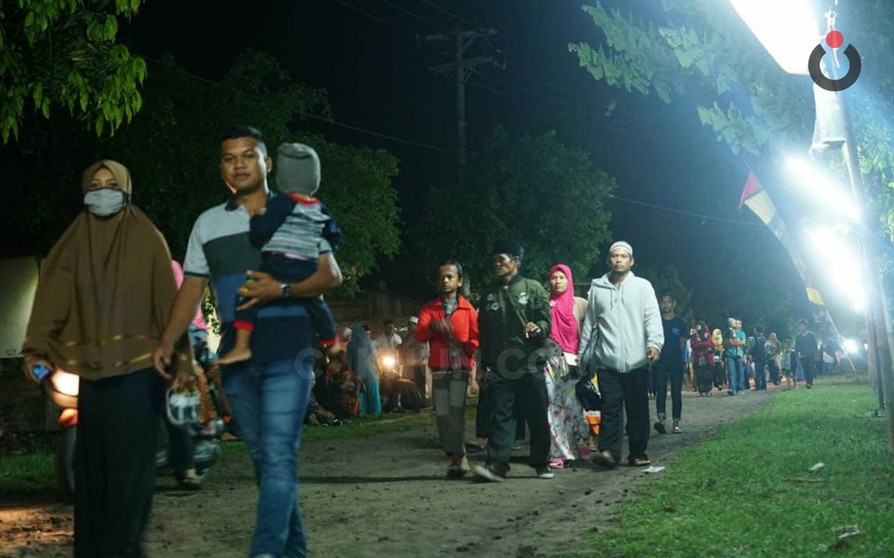 KiaiKanjeng sudah tiba terlebih dahulu ketika rombongan Mbah Nun berangkat dari Madiun. Medan jalan dari Madiun menuju lokasi cukup menantang adrenalin, selain kurangnya penerangan juga didukung oleh rusaknya badan jalan. Banyak lubang-lubang besar dan terisi air di kala hujan datang. Mudah-mudahan segera mendapat perhatian dari pemerintah setempat. Hujan sudah reda menjelang tiba di lokasi, tampak beberapa panitia sudah menjemput di pelataran masuk desa. Rombongan Mbah Nun diantarkan menuju kediaman Pak Carik untuk transit dan makan malam bersama.