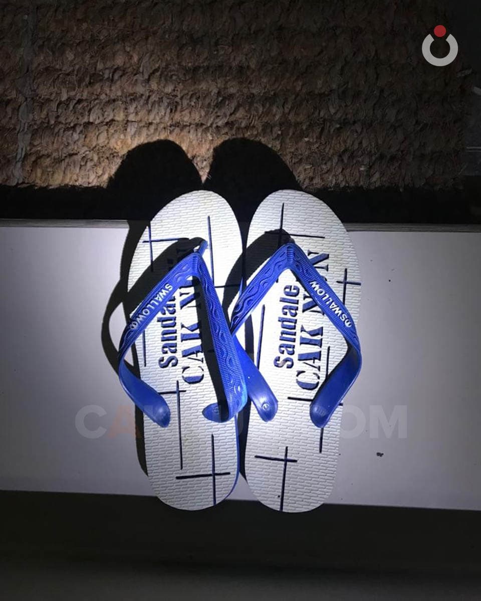 Jalan yang dilalui Mbah Nun dari rumah Pak Carik menuju panggung lumayan becek. Mas Alay berinisiatif menyiapkan sandal yang nyaman untuk Mbah Nun, agar tidak menyusahkan atau terpeleset ketika melewati tanah lapang yang digenangi air. Ada yang unik dari sandal yang disiapkan untuk Mbah Nun, “Sandale Cak Nun” begitu tulisan yang tertera di sandal jepit putih merk swallow itu. Saya sempat meminta kawan photograper untuk memotretnya, lucu! hehehe. Informasinya, malam saat acara di Ponorogo, panitia memberikannya untuk Mbah Nun.