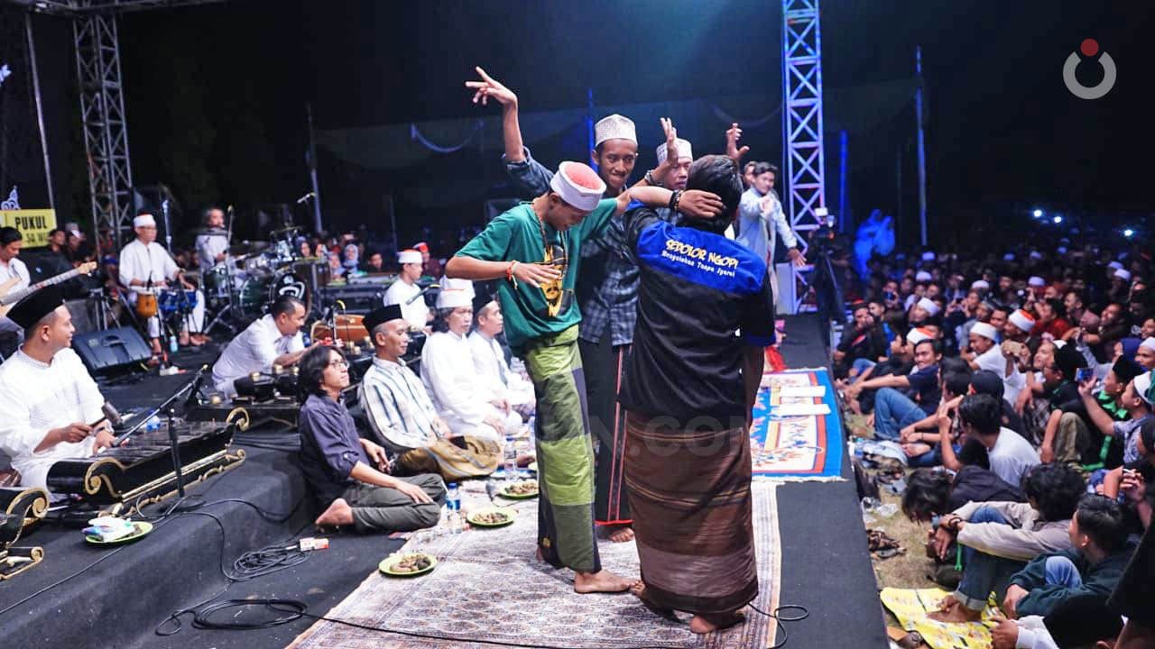 Kehangatan mereka disempurnakan dengan benderang langit yang sedang terang benderang berhias bulan bungkuk pasca purnama. Di backdrop panggung tertulis “Halal Bi Halal Sebagai Langkah Merawat Sendi-Sendi Persaudaraan”.