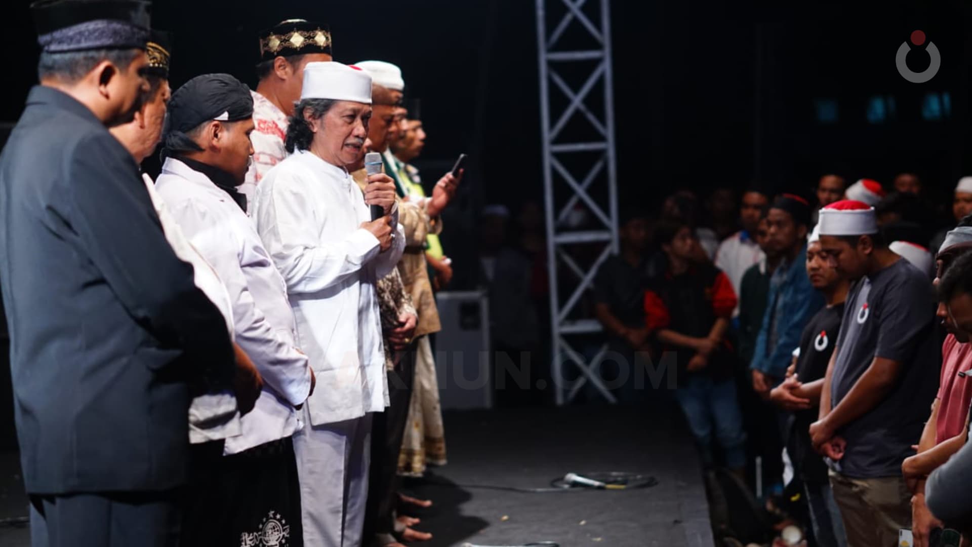 Tujuh menit kemudian semua hadirin dan jamaah itu semuanya masuk ke dalam doa lewat getaran Shohibu Baity. Lampu dikurangi hingga relatif gelap, badan-badan yang berdiri, menundukkan kepala, angin laut yang kencang berhembus mengenai setiap punggung mengantarkan doa-doa itu mengetuk pintu-Nya sembari menyampaikan salam kepada sang kekasih, Muhammad Saw.
