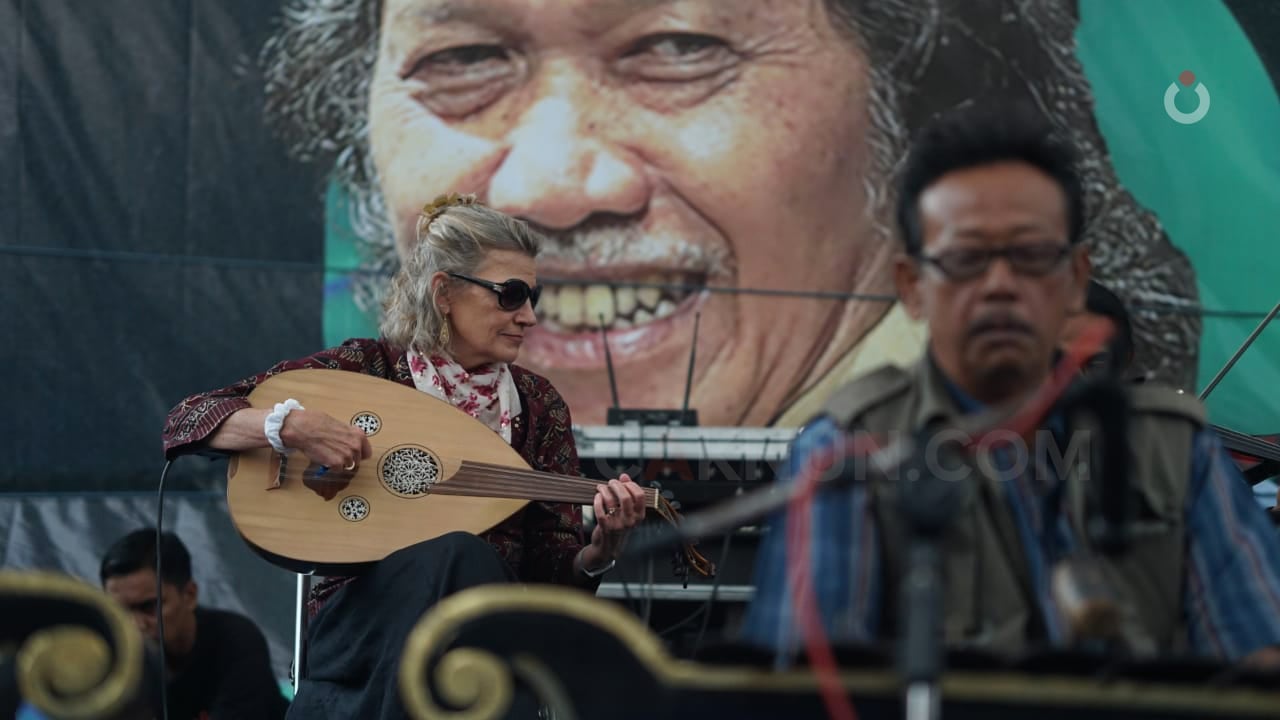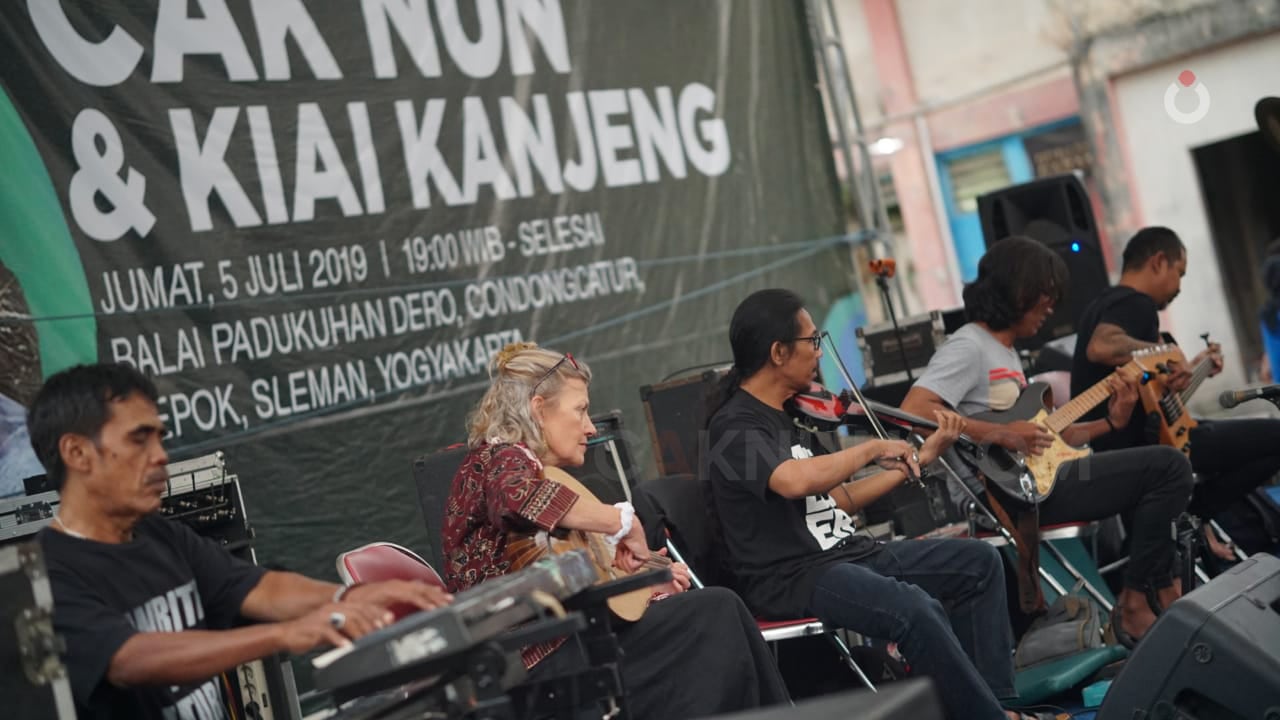 Bu Anne tampak memainkan alat musik gambus beliau, berada di tengah jajaran KiaiKanjeng dan semuanya larut dalam keindahan nada yang sungguh khusyuk. Malam ini beliau siap untuk terlibat aktif dalam relasi cinta dan kemesraan di Sinau Bareng.