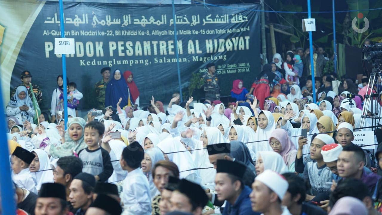 Dua gadis MC yang sangat berpotongan santriwati memandu acara. Sesekali mencoba mencairkan suasana dengan candaan yang, sepertinya cukup dipahami oleh kalangan santri.