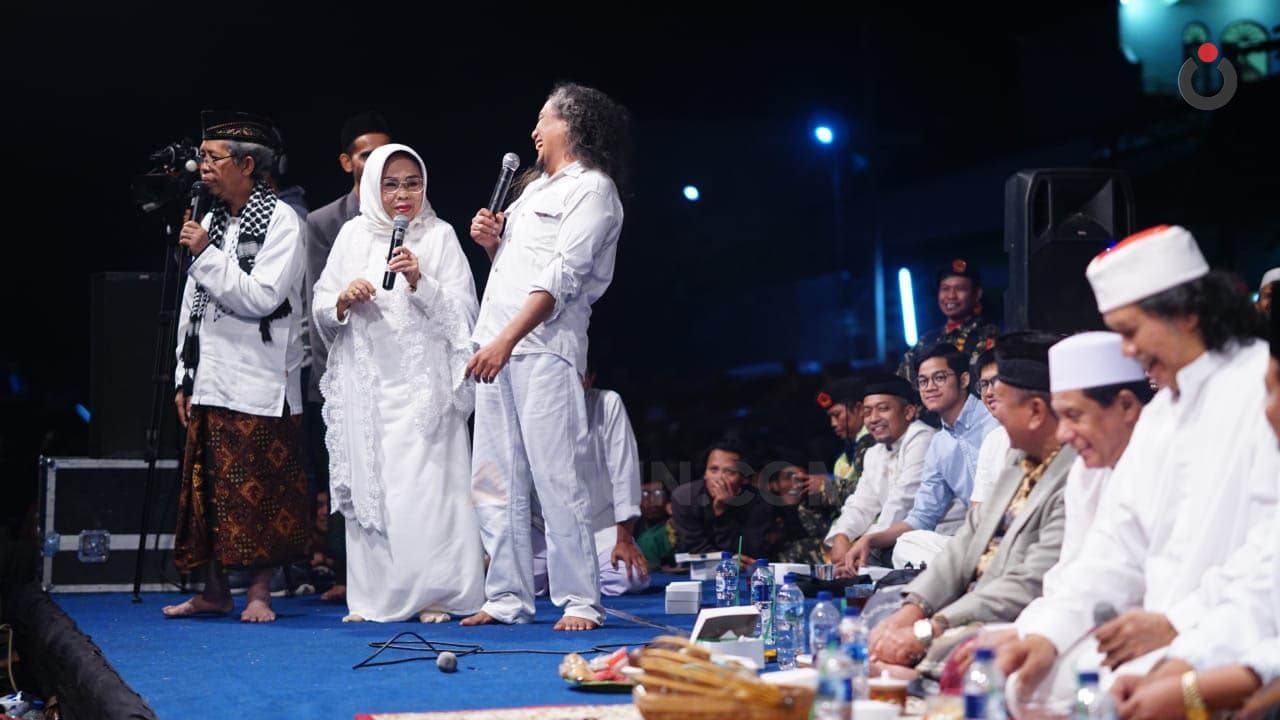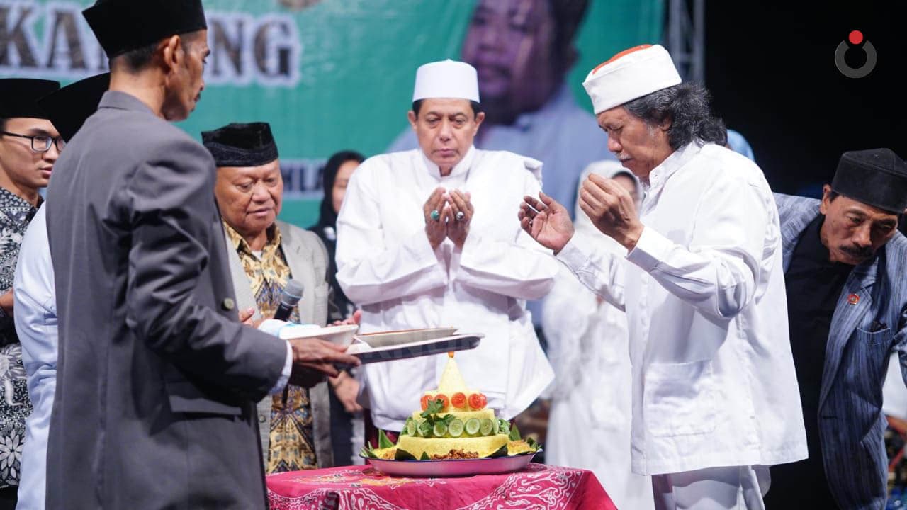 Mbah Nun dipersilahkan untuk memotong tumpeng yang secara simbolik memulakan pembukaan Madrasah Aliyah Al-Ikhlas sementara profil Pondok Pesantren Al-Ikhlas ditayangkan dalam layar proyektor yang bersebaran di berbagai titik seantero tanah lapang. Ini adalah titik ke-4078 Sinau Bareng dan Maiyah terus berjalan di lingkar negeri Nusantara. (MZ Fadil)