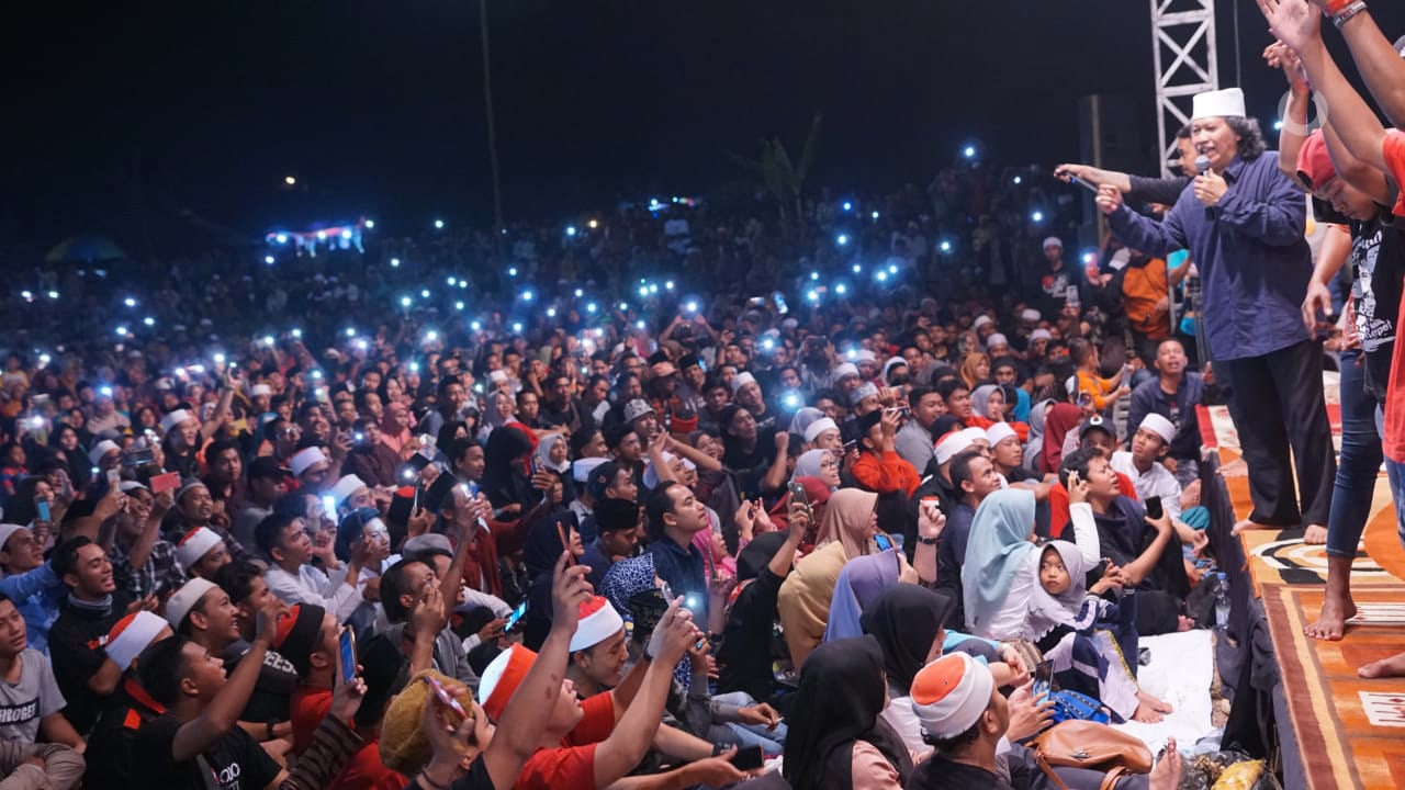 Rindu itu akhirnya terobati. Tempatnya di pelosok desa Gunungsari Kecamatan Dawarblandong Kabupaten Mojokerto. Jamaah Maiyah berangkat menuju satu titik lokasi. Mulai dari jalan raya alas Dawarblandong hingga memasuki lokasi lapangan Gunungsari, jalan desa dipadati motor dan mobil. Rabu (4/12/2019), Mbah Nun dan Kiai Kanjeng Sinau Bareng “Gunungsari Bersyukur 5”.