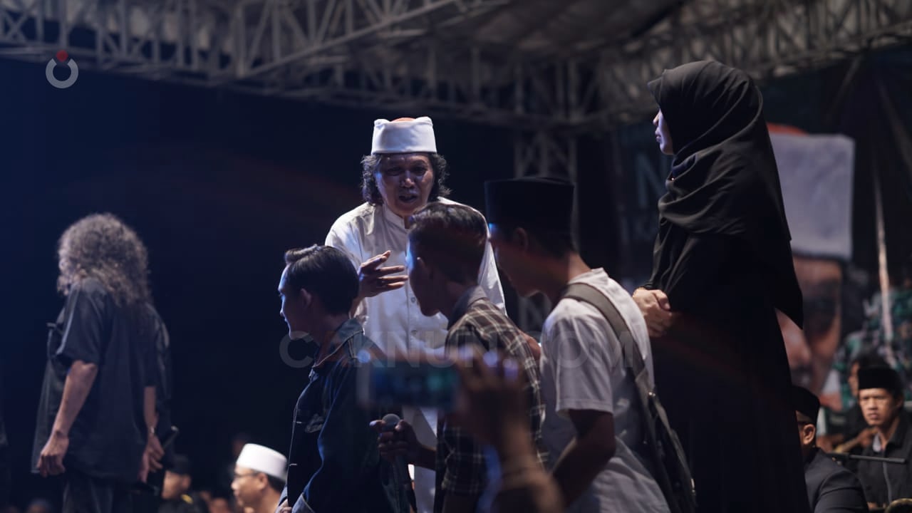 Apa yang saya tangkap? Ya maaf kalau istilah membumikan shalawat sudah terlalu sering dipakai, saya memilih menyebut ini sebagai peristiwa dimana shalawat direalistiskan. Dia tidak lagi sekadar rapalan-rapalan lirik yang dikeramatkan atau nada sakti yang hanya berlaku bagi believe system tertentu. Pada peristiwa Sinau Bareng seperti di Lamongan malam ini, shalawat ditarik pada keberfungsian sosial yang real dengan kegembiraan dan kemesraan yang membahagiakan. Antusiasme tampak sekali, beberapa kesalahan dan misskomunikasi masih kerap terjadi pada awal. Tapi begitulah hidup, harus ada persoalan yang kita coba rantasi bersama. Apalagi ketika tampuk komando berupa microphone diberikan pada perwakilan jamaah, sesekali masih terjadi si pemegang microphone yang secara SOP tugasnya adalah memberi komando, malah ikut menyanyi.