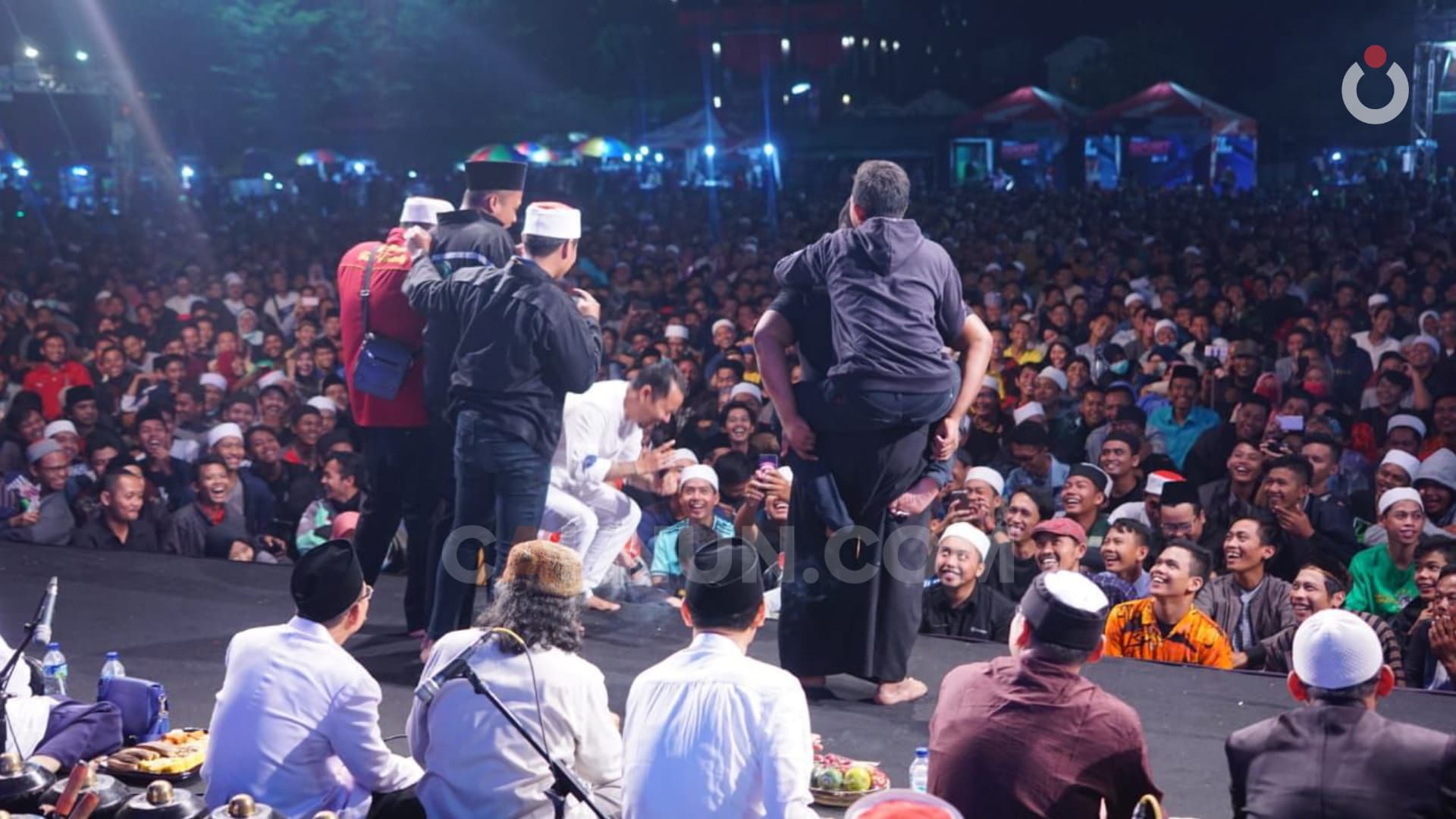 Sudah begitu, untuk mereka disiapkan hadiah berupa uang. Uangnya bantingan dari bapak-bapak dan ibu-ibu yang ada di panggung dan dipelopori oleh Mbah Nun sendiri. Beberapa jamaah juga terpancing urun. Lumayan buat beli sahur, dan paket data. Oh ya, dapat peci Maiyah juga mereka dari Mbah Nun.