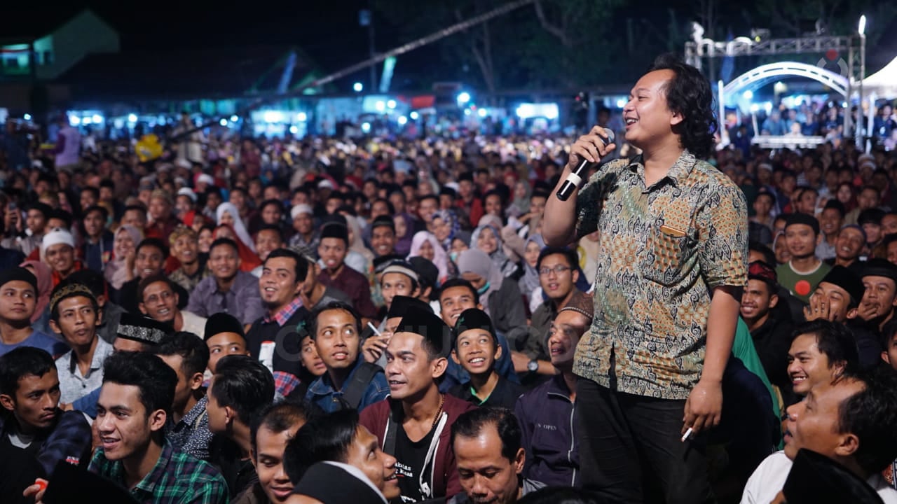Saya mbatin. Dari mana sajakah mereka. Apa yang membuat mereka antusias datang ke Sinau Bareng ini. Kalau pakai bahasa Dewi Lestari, sihir apa yang membuat mereka terserap ke sini. Ini pertanyaan standar. Sewaktu Mbah Nun, rombongan tuan rumah, serta Pak Kyai Abdul Jalil dan Habib Anies Ba’asyin tiba di panggung, saya nyempil di bagian belakang panggung, saya menoleh ke sisi kanan dan kiri. Memang berjejal orang-orang yang mengalir ke sini. Saya coba pandangi wajah-wajah mereka, dan dari sorot mata mereka, ada banyak yang bisa kita rasakan.