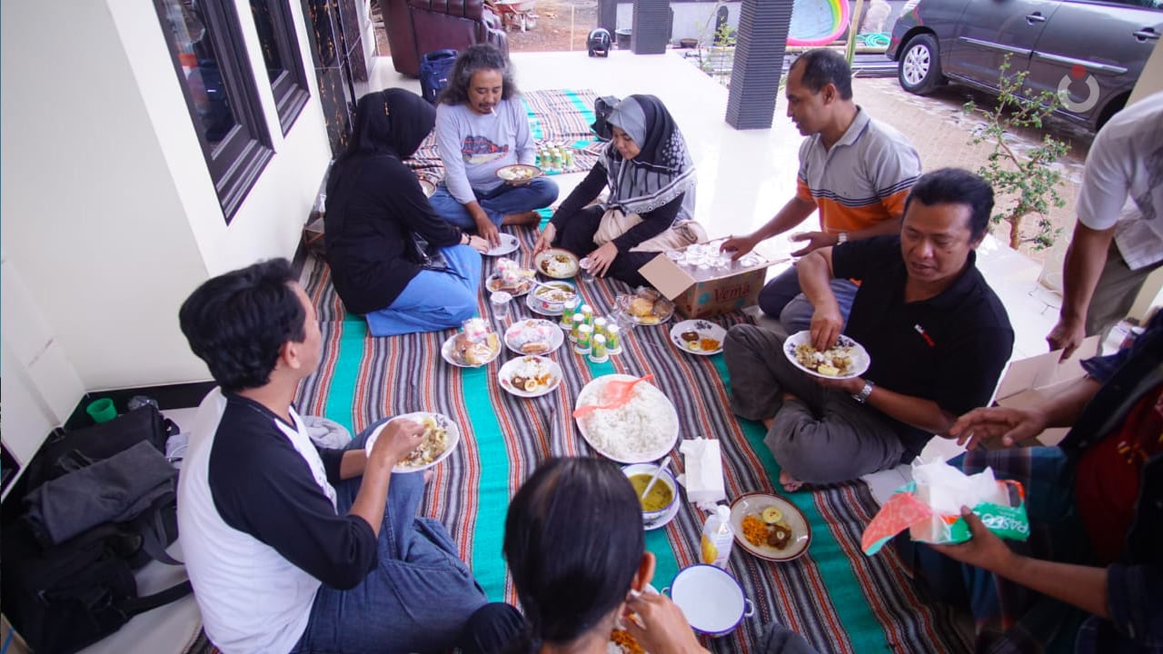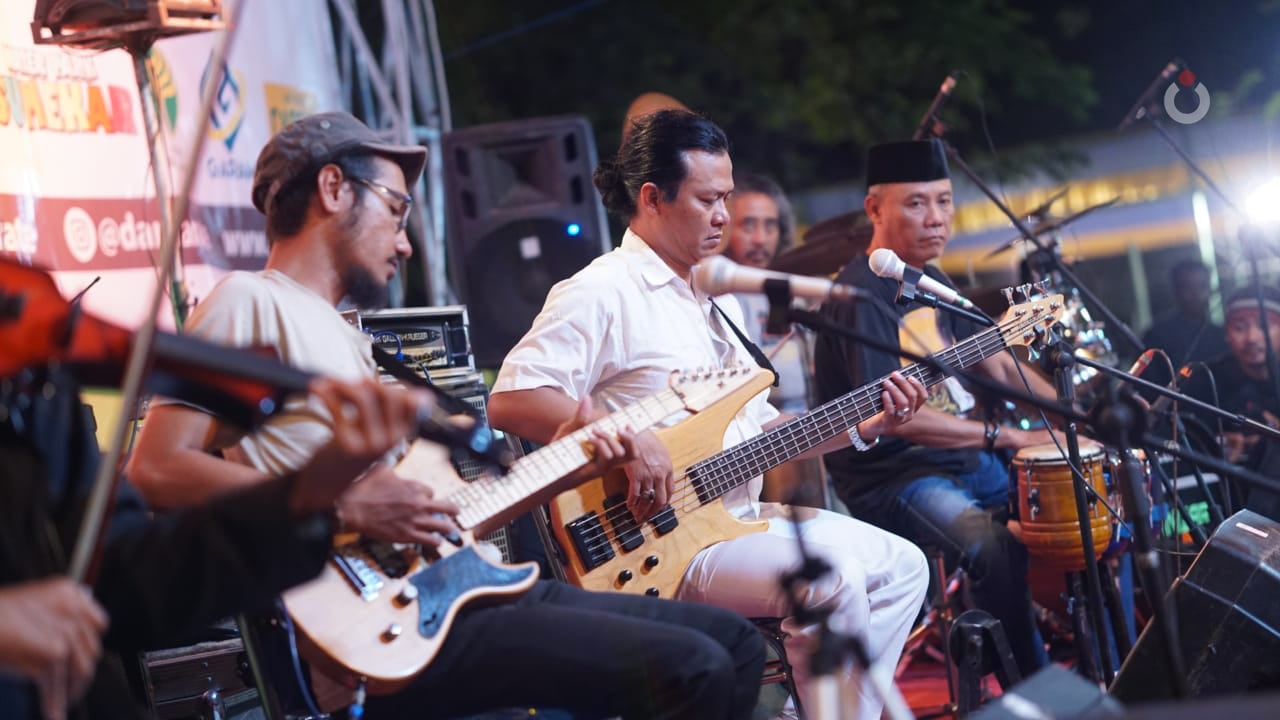 Di lokasi, panggung utama telah berdiri dan background panggung jelas terbaca mengusung tema “Menggali Hikmah Isra’ Mi’raj” terasa ada kemerdekaan sendiri dari diangkatnya tema ini. Hari Isra’ Mi’raj menurut penanggalan modern yang kita anut secara nasional masih jauh jaraknya. Tapi warga Langgar Pondok Albelabeto ini mungkin merasa berdaulat dari kalender. Merdeka dari waktu. Merdeka dari ruang. Dalam Sinau Bareng, penekanan untuk merdeka dan berdaulat itu selalu kita asah. Menjadikannya keberdaulatan dan kebersenang-senangan yang disenangi oleh Allah Swt.