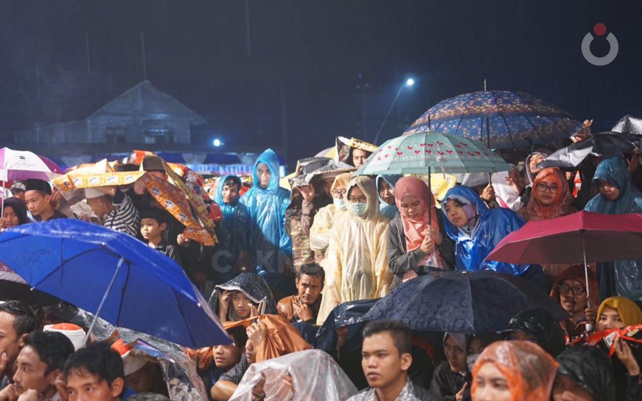 Dari nomor yang ditampilkan Khatmil Qur`an dilantunkan oleh KiaiKanjeng dengan pemaknaan yang diberikan oleh Mbah Nun bahwa ini adalah cara kita mensyukuri nikmat hujan. Bisa kita katakan, kali ini nomor itu jadi berjudul “Khatmil Hujan”. Dan Mbah Nun kemudian juga melepaskan pertanyaan-pertanyaan mengenai kenapa para hadirin tetap bertahan dalam kondisi semacam ini dan rupanya jawaban yang muncul cukup beragam. Ada yang menyahut karena mencari ilmu, seduluran, sampai karena alasan tresno. Namun Mbah Nun tidak luput menegaskan, “Jangan menyangka yang membuat anda bertahan di sini adalah karena saya. Aku ra nduwe kemampuan menahan kowe kabeh.” Dalam Sinau Bareng kita mendidik diri untuk berjuang mencari sesuatu yang lebih dan lebih, bukan hal meteriil juga bukan sekadar kekaguman pada sosok belaka. Selalu ada sesuatu di baliknya, itulah kita mencari.