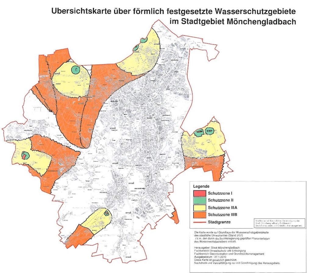 Di Jerman, penyediaan air bersih dikelola oleh Wasserwerk atau semacam PDAM di Indonesia. Bedanya, di Jerman masalah kualitas air minum yang disalurkan ke warga dijamin oleh negara. Oleh karena itu, tempat sumur pengambilan air minum dijaga betul dari kontaminan yang mungkin masuk ke dalam sumur tersebut. Area proteksi dibagi menjadi tiga area.