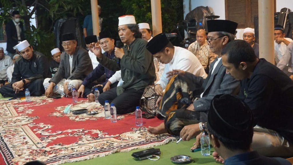 “Mulai malam ini, kita harus berusaha untuk selalu berhati Muhammad. Sudah pasti tidak bisa sekualitatif beliau, tetapi kita harus bisa mengacu kepada hati beliau,” Mbah Nun melanjutkan. Mbah Nun kemudian mengutip salah satu ayat yang juga selalu dibaca saat sebelum shalawat; Laqod jaaakum rasuulun min anfusikum aziizun ‘alaihi maa anittum bi-l-mu’miniina rouufurrohiim. Salah satu ayat yang Allah sendiri menegaskan bahwa kehadiran Rasulullah Saw merupakan salah satu implementasi dari Rahman dan Rahiimnya Allah dengan mengutus seorang Rasul dari kalangan manusia itu sendiri.