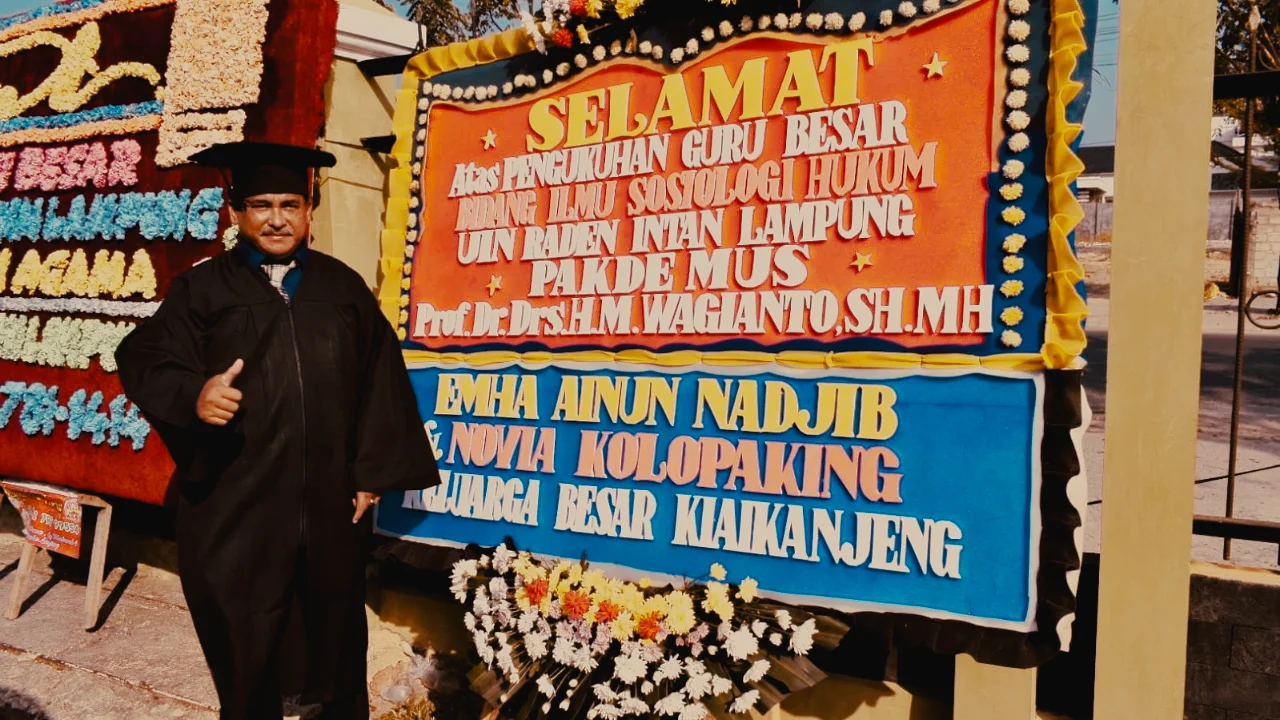 Hari ini, kita semua mengucap syukur alhamdulillah, mengungkapkan rasa bangga dan bahagia sekaligus takdzim kepada Pakde Mus. Salah satu orang tua kita di Maiyah yang hari ini resmi dikukuhkan sebagai Guru Besar di Universitas Islam Negeri Raden Intan Lampung; Prof. Dr. Dr. M. Wagiyanto, S.H, M.H.