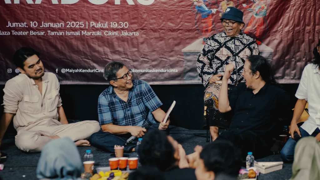 Juwita kemudian membuka sesi tanya jawab kedua, menyampaikan kritik terhadap birokrasi di tempat tinggalnya. Merujuk ke poster Kenduri Cinta malam itu, ia mengibaratkan bupatinya sebagai “tangan putih”, sementara pejabat-pejabatnya adalah “badut”. Kritik ini mencerminkan kekecewaannya terhadap oligarki yang masih mendominasi. Ia bertanya, “Butuh berapa banyak lagi kesalahan yang harus dilakukan pejabat kalau kita tidak sedang baik-baik saja?”
